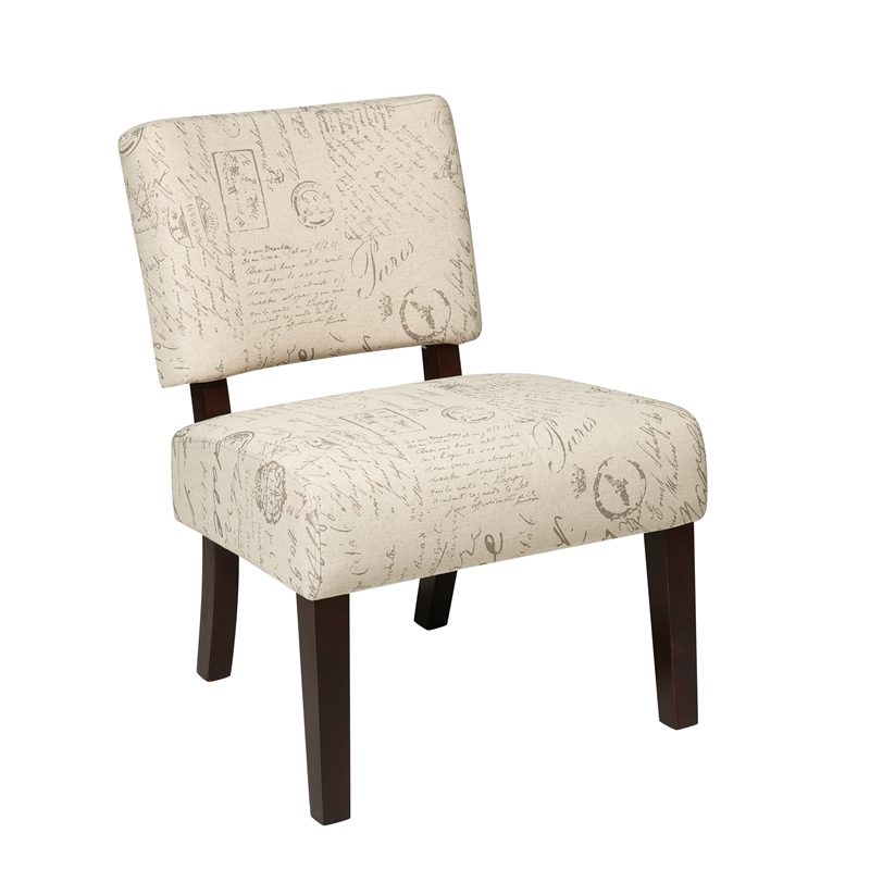 Description : Avenue Six - Accent Chairs - GLN51S13 - Our Glen Chair is the perfect addition to any home décor. Available in a captivating variety of high-performance, easy-care fabrics, this chair complements existing furniture and can provide a pop of color and style creating a chic modern look. The box spring seat provides both comfort and durability and with minimal tools required, this chair can easily become a household favorite!Covered in high performance, easy care fabricEspresso finish legs and trimScript fabricSpecifications:Overall Product Dimensions: 31" H x 27.5" W x 32" DProduct Weight: 44 lbsSeat Dimensions: 27.25" W x 22†D x 9†TBack Dimensions: 27.25" W x 15.5" H x 7.5†TOnline Order for Avenue Six Glen Accent Fabric Slipper Chair in Script Ivory