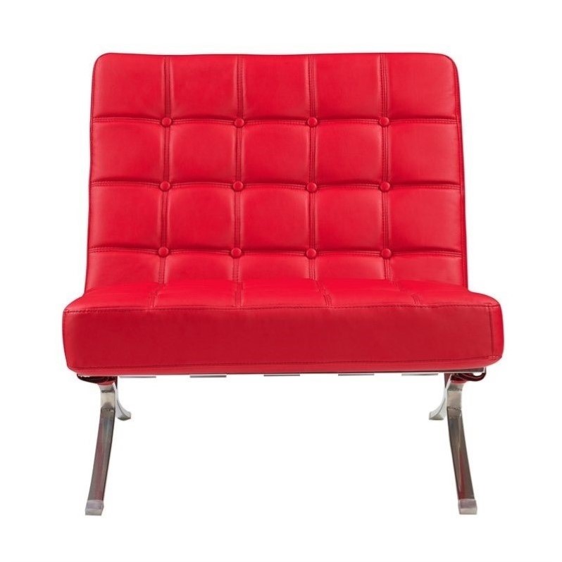 Description : Global Furniture USA - Accent Chairs - U9908R6VREDCH (M) - Ideal for family get-togethers and fun movie nights with friends, this armchair completes your entertainment experience. Offering maximum comfort, it is designed with red bonded leather upholstery, deep plush seating, and a modern edge to contemporary styling. Conveniently enough, you can place this chair between your couch and sofas for multifunctional use. Features Seat and seat back upholstered in red bonded leather; Red leather match on sides and back; Chrome legs; Medium seating comfort support level; Attached seat and back cushions; Kiln dried hardwood frame; Constructed with s-springs and elastic webbing; Dual springs allow for more comfort and support; High resilience seat foam for superior durability and comfort . Specifications Overall product dimensions: 37" H x 36" W x 43" D .Online Order for Global Furniture Chair with Chrome Legs in Red